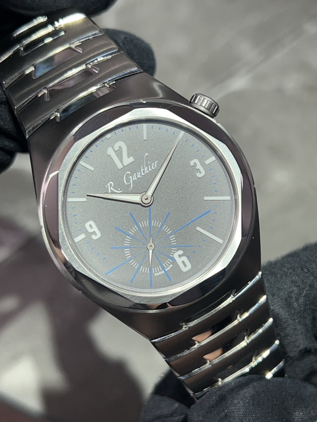 Romain Gauthier is a Swiss luxury watch manufacturer founded in 2005. This time, we have a Continuum titanium bracelet in stock, featuring a uniquely designed, geometric bezel with six facets.