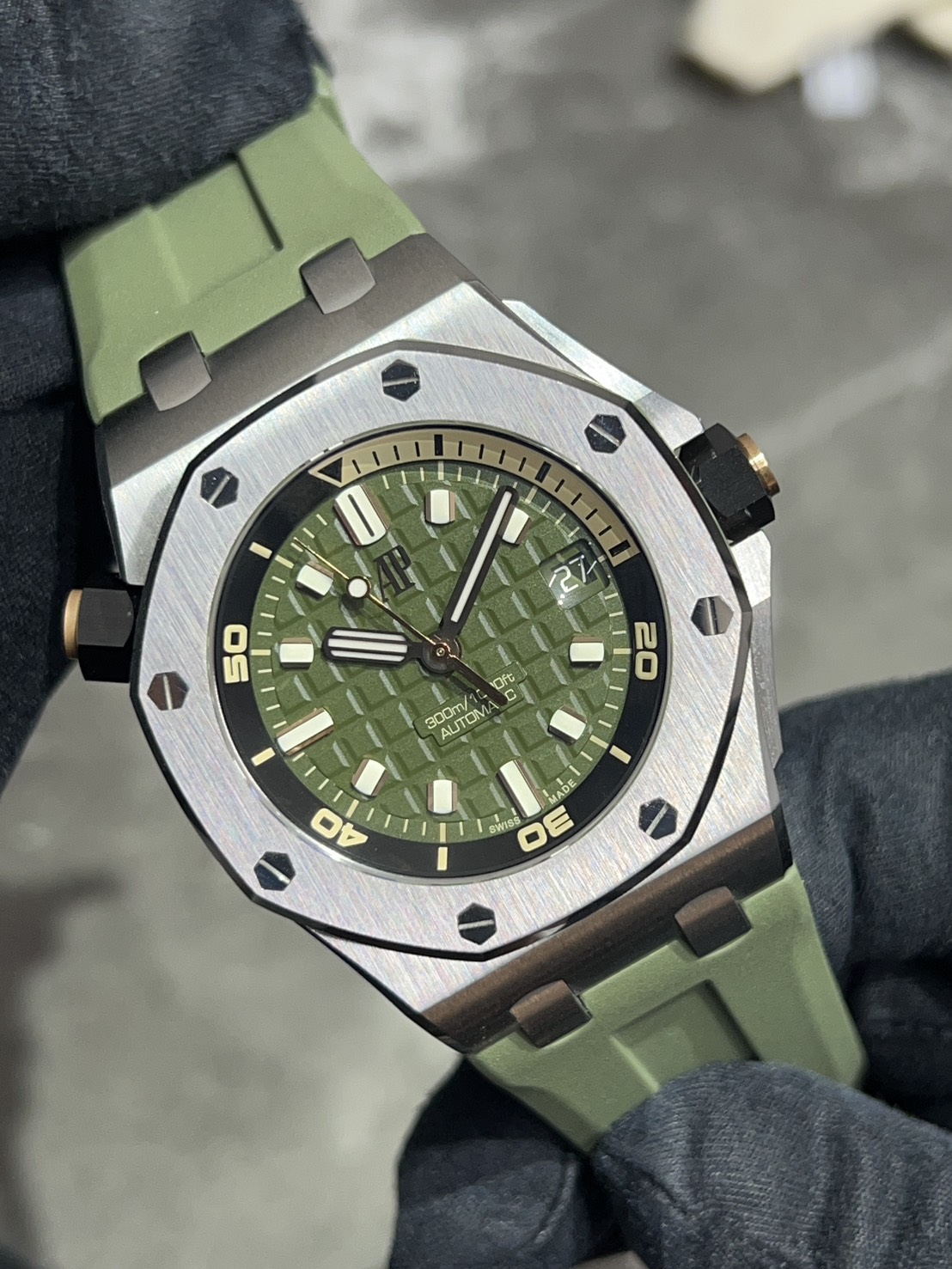 | Dial colour | Khaki dial with "Mega Tapisserie" pattern |