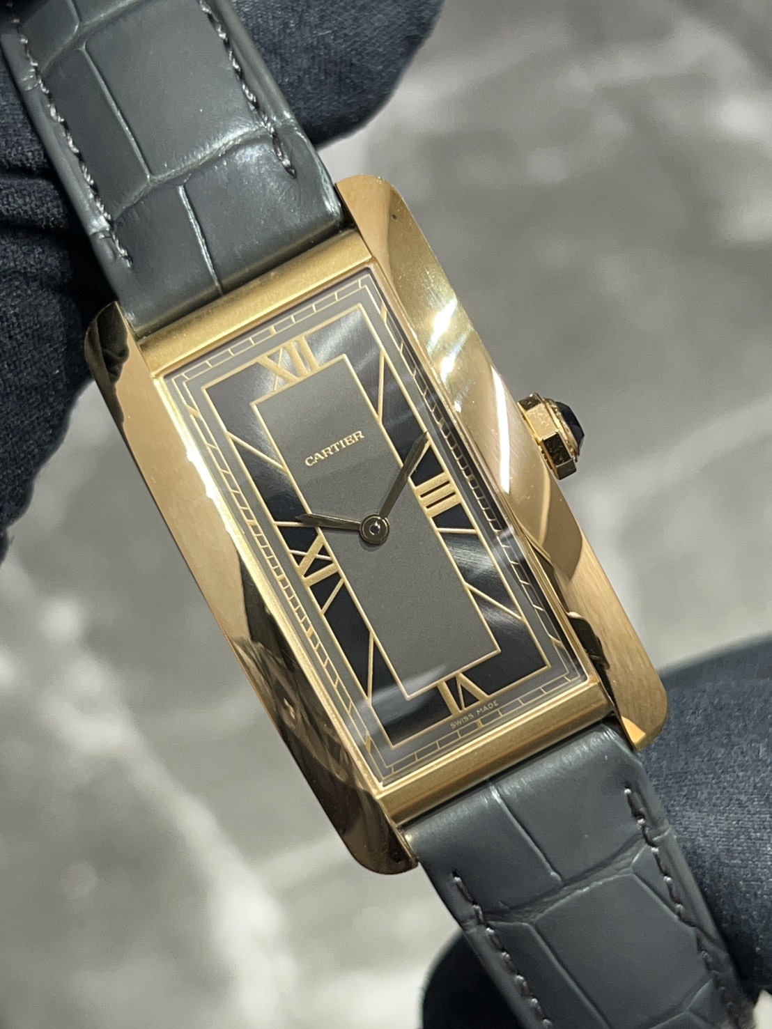 The Tank Américaine, a model from Cartier’s Tank watch collection and released in 1989, features a beautifully curved form and a vertically elongated case and strap.